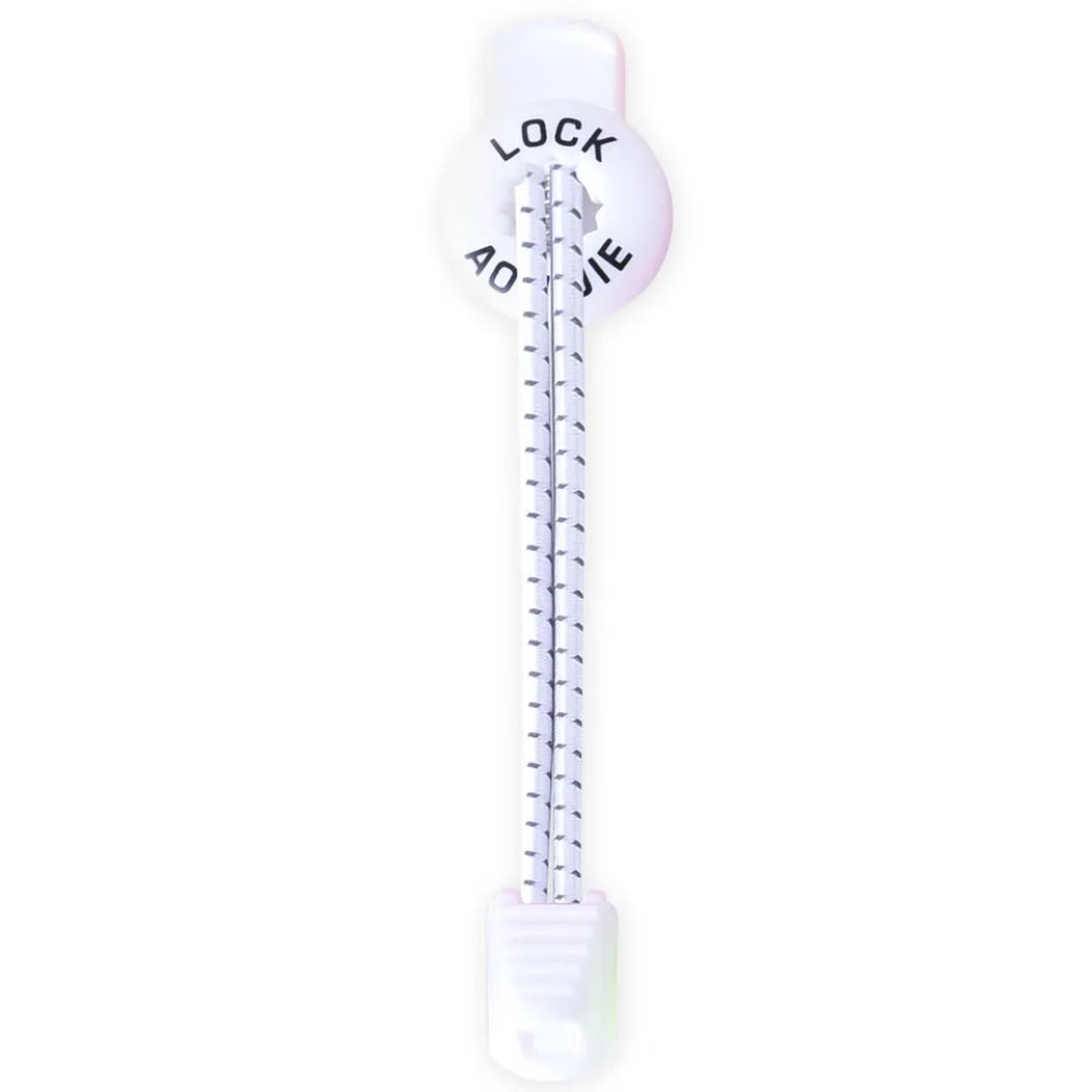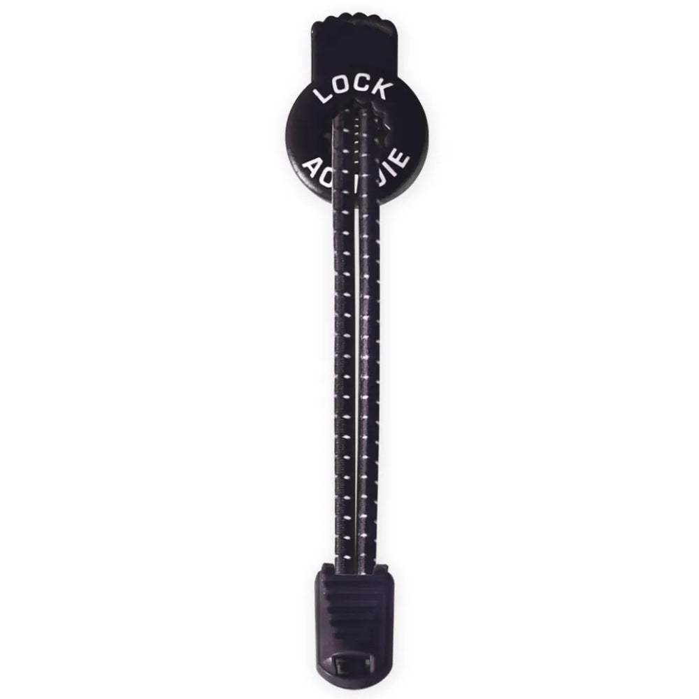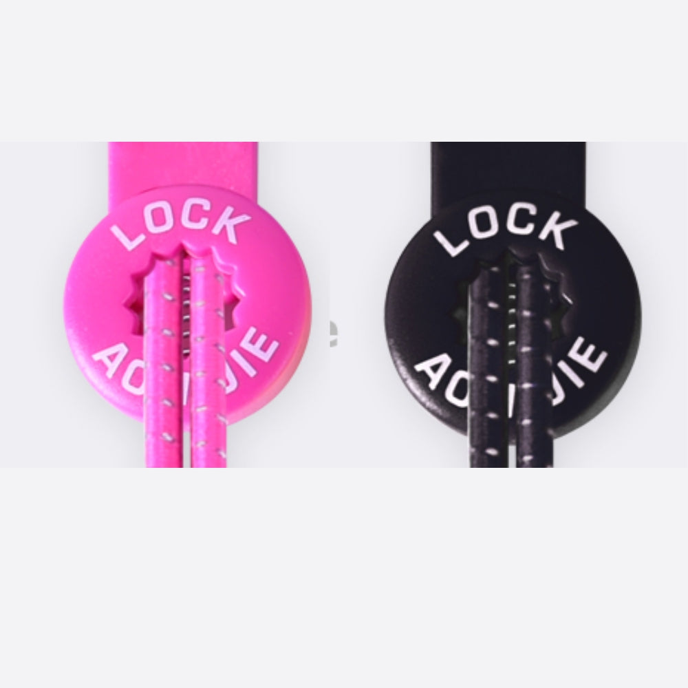 Pase los cordones a través de los pasajes del dispositivo de bloqueo, presione hacia abajo la parte superior del bloqueo y deslicelo hacia la lengüeta del zapato.