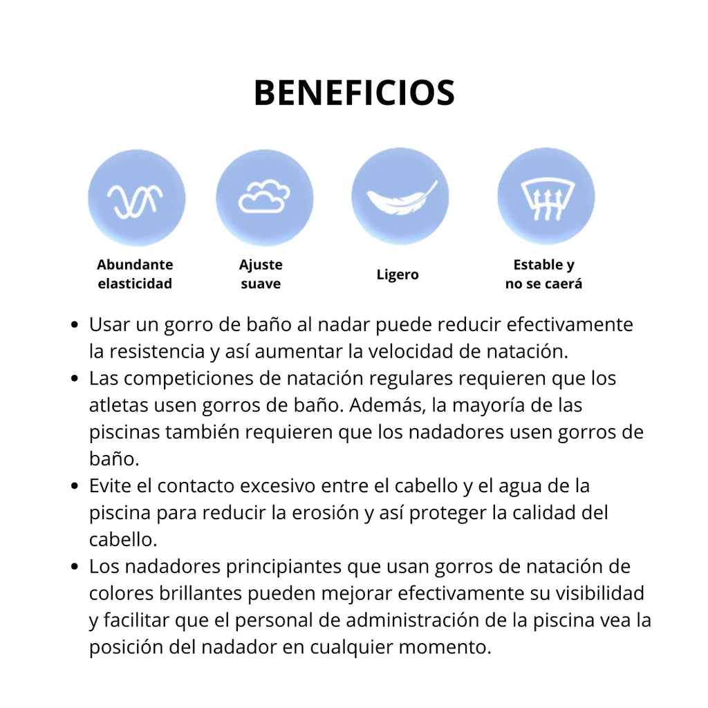 Gorro de natación de silicona ecológica, seguro y duradero.