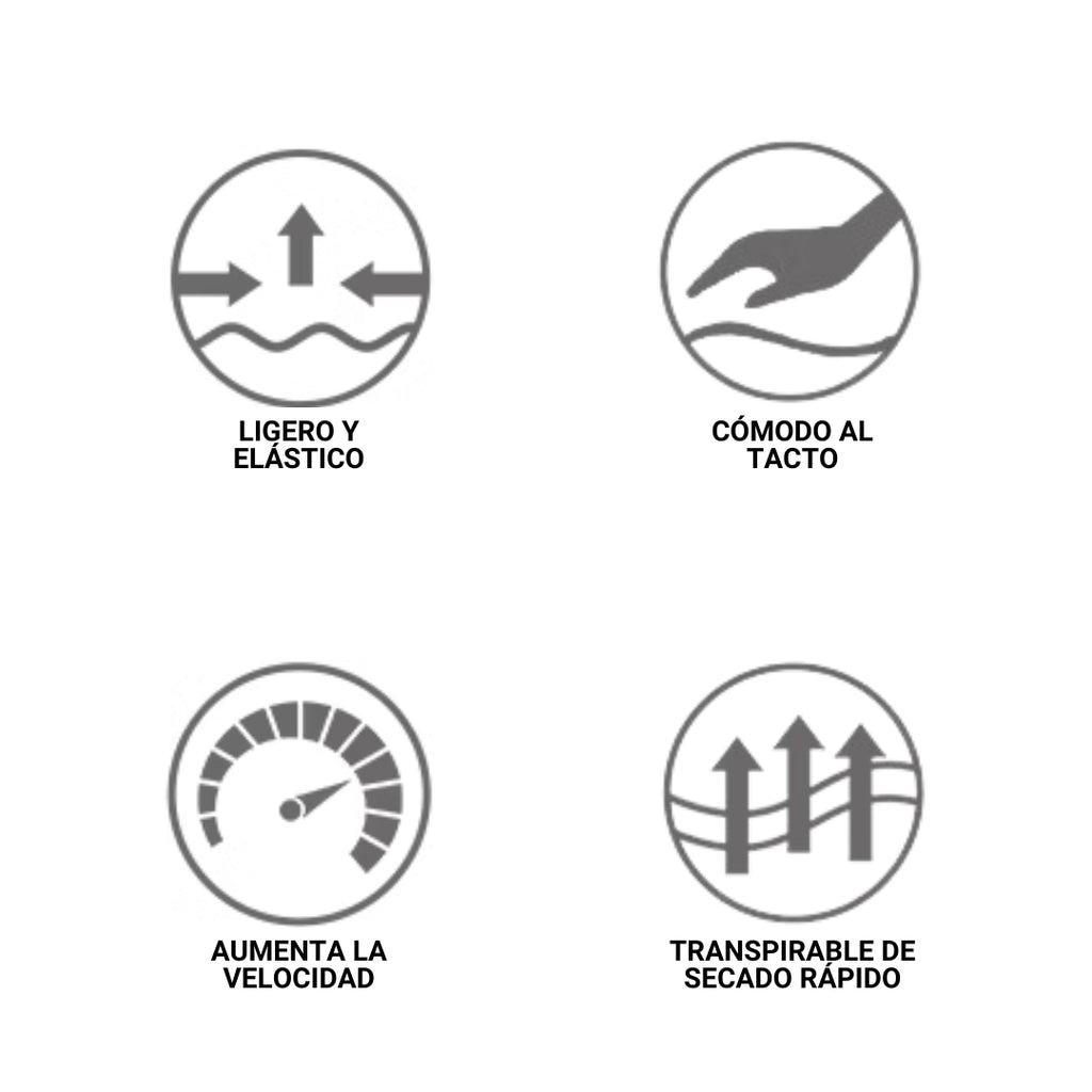 Sin revestimiento y sin bolsillos que brindan poca resistencia, mejora la velocidad de natación.