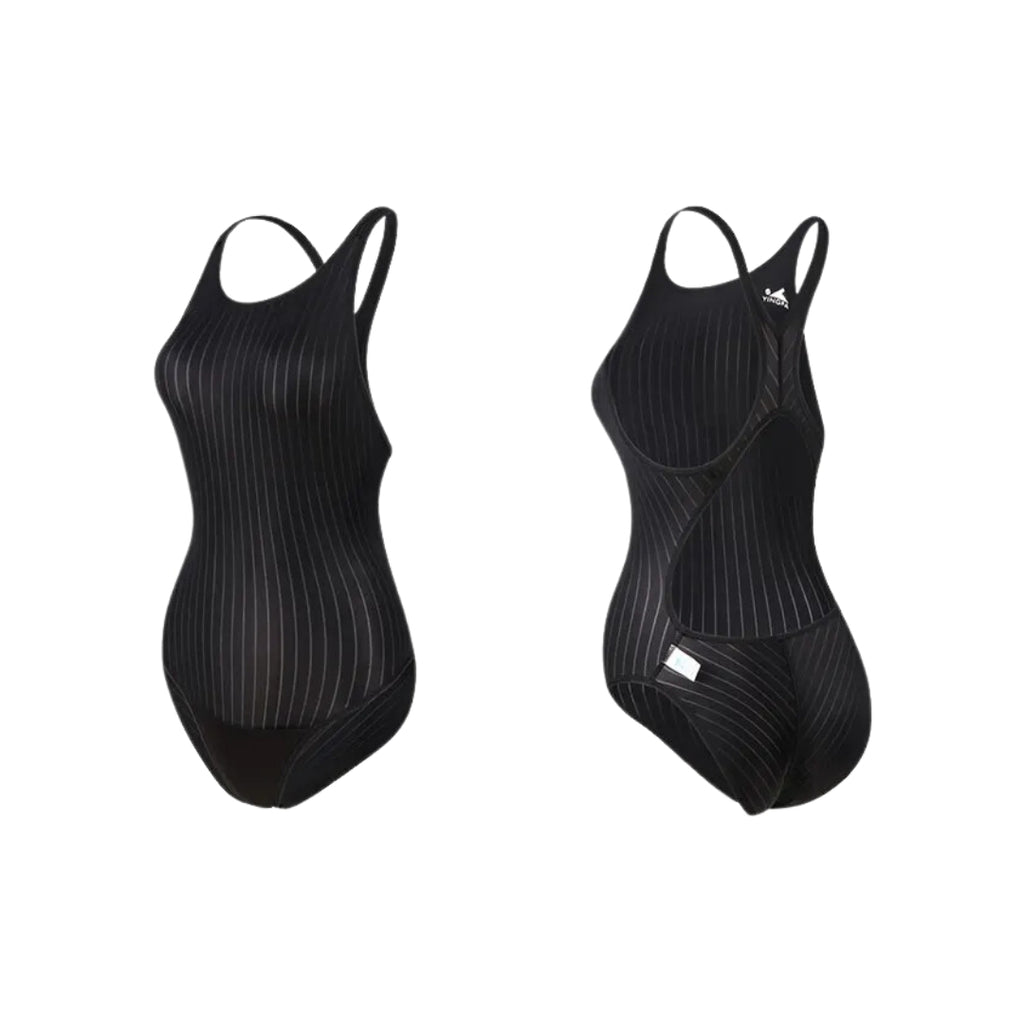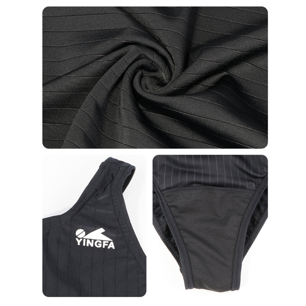 Traje de baño profesional femenino para competición Yingfa, elaborado con la mejor tecnología deportiva para un mejor rendimiento. Con una estructura de fibra fina, las gotas de humedad se absorben, conducen y difunden rápidamente a través de las ranuras de la superficie, lo que acelera la evaporación.